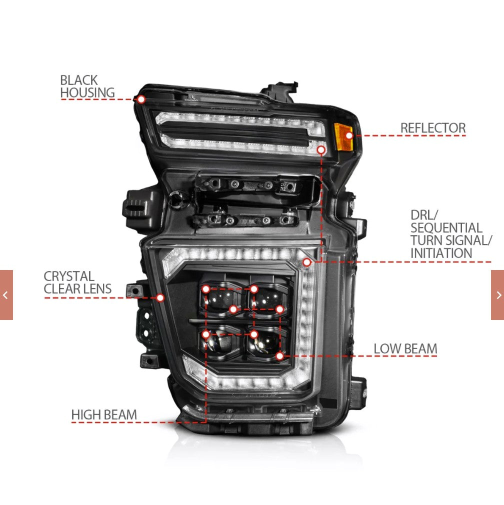 CHEVY SILVERADO 2500HD/3500HD 20-24 Z-SERIES FULL LED PROJECTOR HEADLIGHTS BLACK W/ DRL SWITCH, INITIATION & SEQUENTIAL