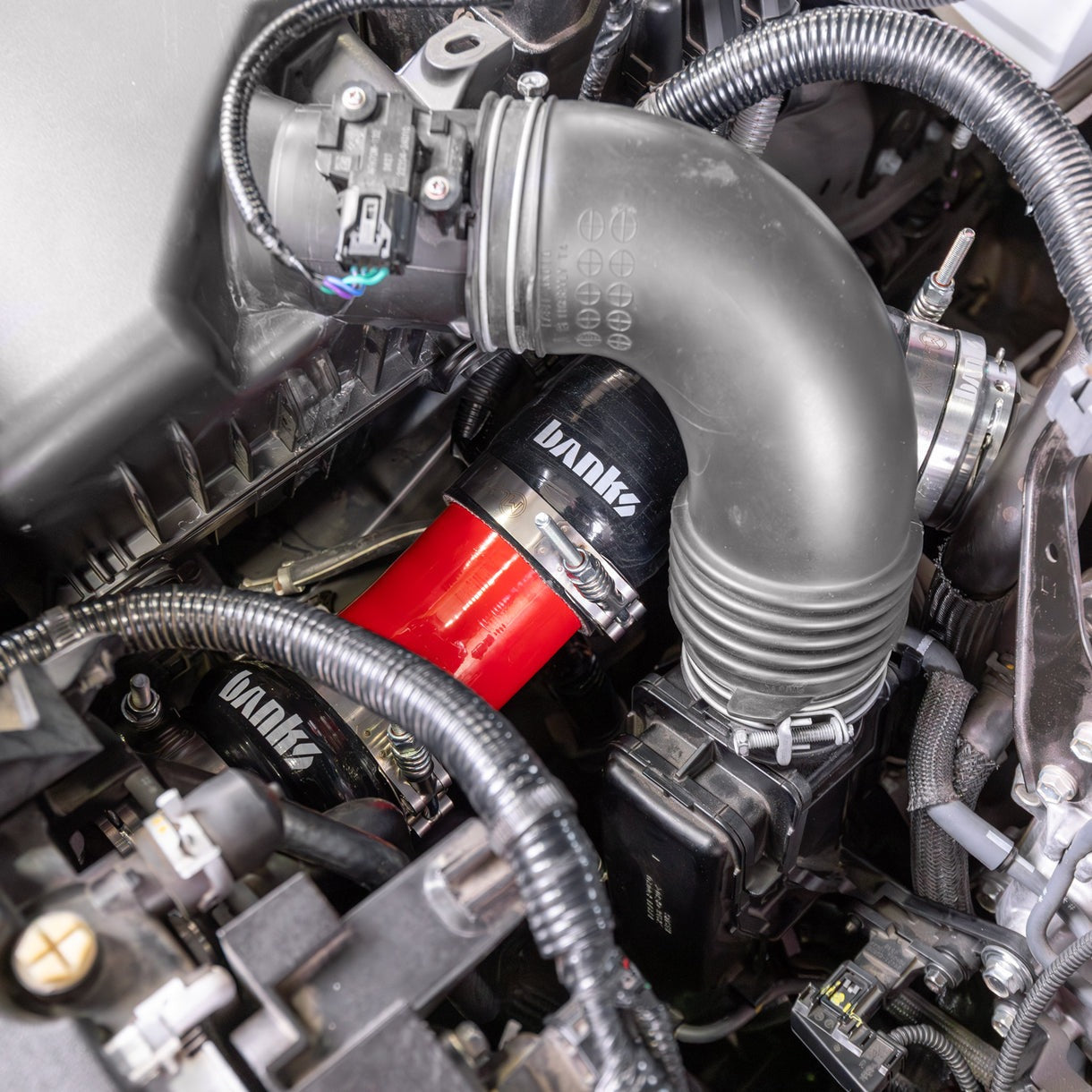 Banks brings their proven Boost-Tube Upgrade to the new 2024 Toyota Tacoma, 4Runner, and Land Cruiser 2.4L turbo. Featuring huge 3” 409 stainless steel mandrel-bent tubes for ultra-low resistance, red powder coating for corrosion protection, and stronger-than-OEM billet quick connect adapters for leak-free performance. Combine these Boost Tubes with the forthcoming Banks intercooler and Banks Ram-Air for unparalleled air flow improvements.